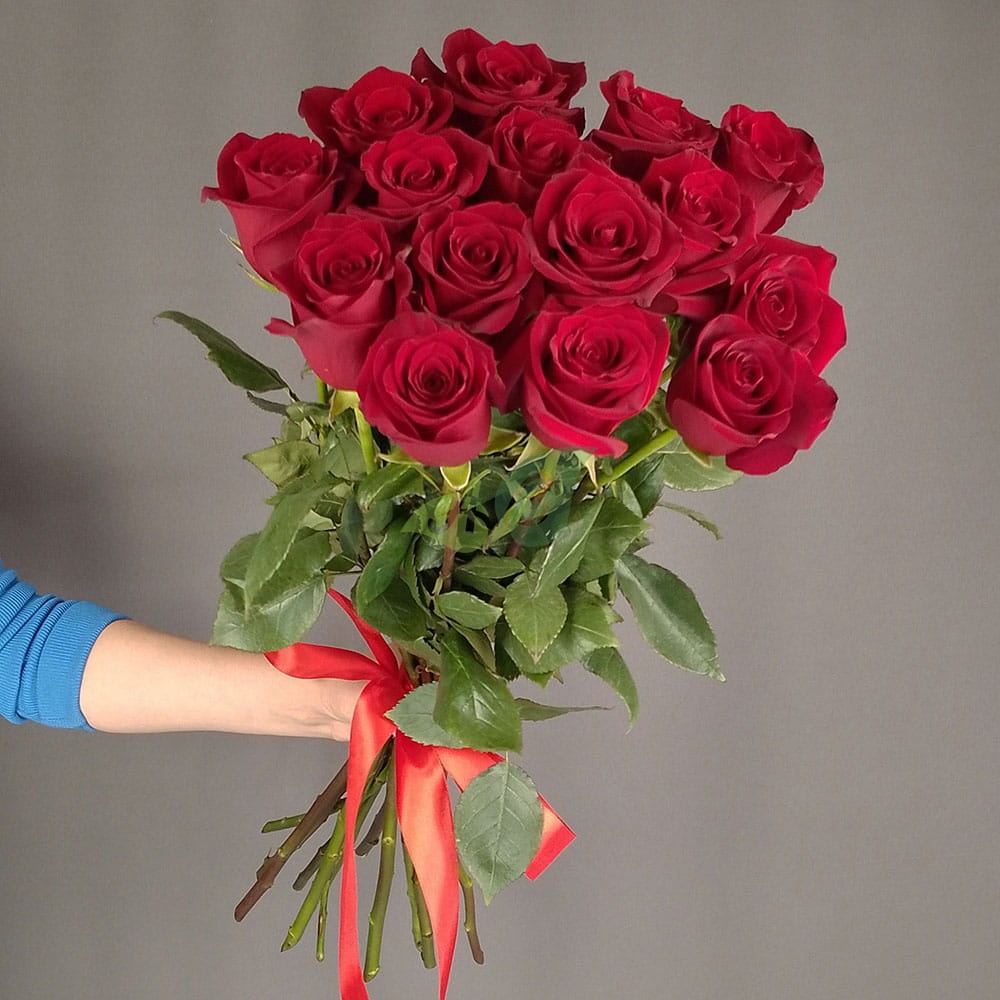 Красные розы на длинной ножке в букете издавна считались символом любви и уважения. Роскошный красный бутон подчёркивает изысканность и великолепие каждого цветка. Ни одно сердце не сможет устоять против такого шикарного букета!