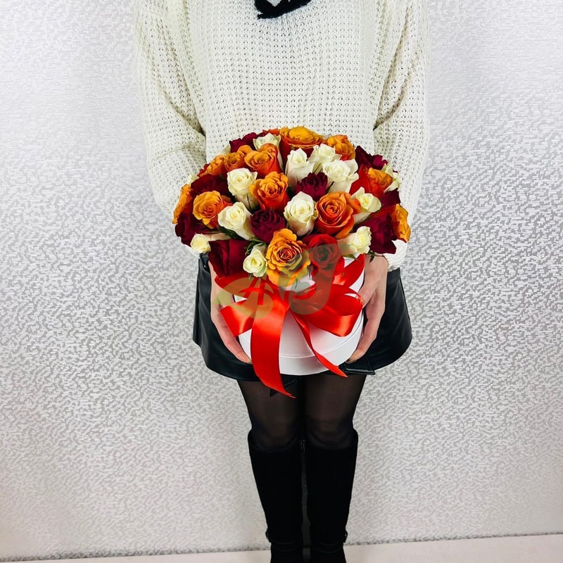 Состав и характеристики композиции 51 роза микс Кения в коробке: