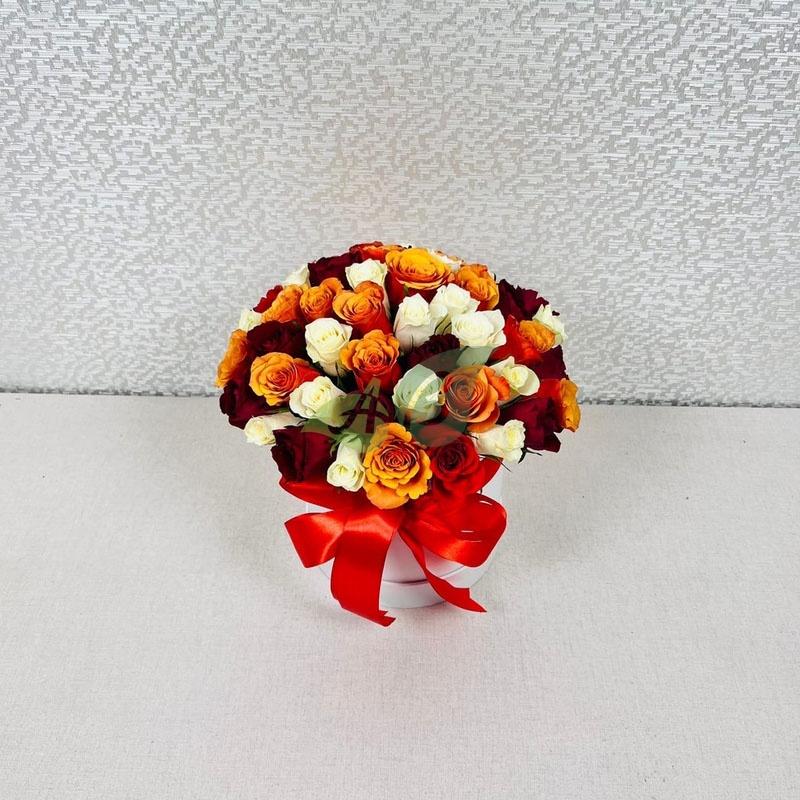 Состав и характеристики композиции 51 роза микс Кения в коробке: